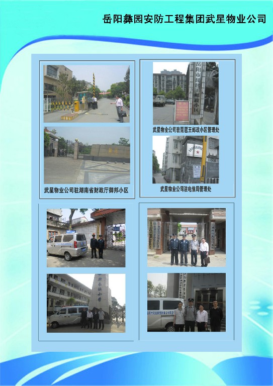 岳陽(yáng)武星物業(yè)管理有限公司繼岳陽(yáng)市武星保安公司于2012年2月成立,武星保安公司是經(jīng)省公安廳批準(zhǔn)成立的民營(yíng)保安公司,為滿(mǎn)足廣大客戶(hù)的迫切要求,公司能為客戶(hù)提供保安、物業(yè)整體服務(wù)。武星物業(yè)公司技術(shù)力量雄厚,有電梯維修工程師、園林綠化師、水電安裝工程師、消防等專(zhuān)業(yè)技術(shù)人才。為了更好地服務(wù)社會(huì)、培育特種人才,公司與岳陽(yáng)市巴陵職業(yè)技術(shù)學(xué)校聯(lián)合辦學(xué),開(kāi)設(shè)了保鏢保安武術(shù)散打班、物業(yè)管理班、園林綠化技術(shù)班、水電維修班、禮儀班,現(xiàn)有專(zhuān)業(yè)學(xué)員幾百名。公司為各黨政機(jī)關(guān)、社會(huì)團(tuán)體、廠礦企事業(yè)單位、金融機(jī)構(gòu)、房地產(chǎn)開(kāi)發(fā)商居民住宅、賓館、學(xué)校、娛樂(lè)場(chǎng)所等提供人力資源和技術(shù)防范服務(wù)。目前公司有幾十家大客戶(hù),公司優(yōu)質(zhì)的服務(wù)得到了客戶(hù)的好評(píng)?,F(xiàn)經(jīng)公安廳市公安局批準(zhǔn)成立了保衛(wèi)科、督查應(yīng)急大隊(duì),為客戶(hù)不定時(shí)的服務(wù)和回訪,公司有一批業(yè)務(wù)精、能力強(qiáng)的管理人才,為客戶(hù)提供高質(zhì)量的服務(wù)。武星保安物業(yè),保您家安樂(lè)業(yè)。